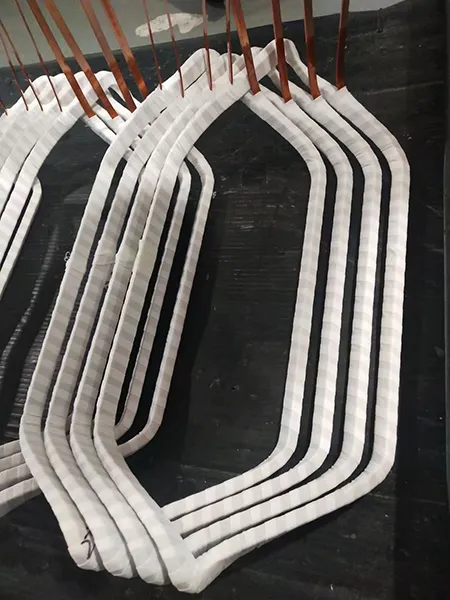 La máquina de formación de bobinas funciona según el principio de movimiento sincronizado y constante, para garantizar que la distancia de expansión entre los dos extremos sea constante y se pueda insertar con precisión en la ranura del motor.